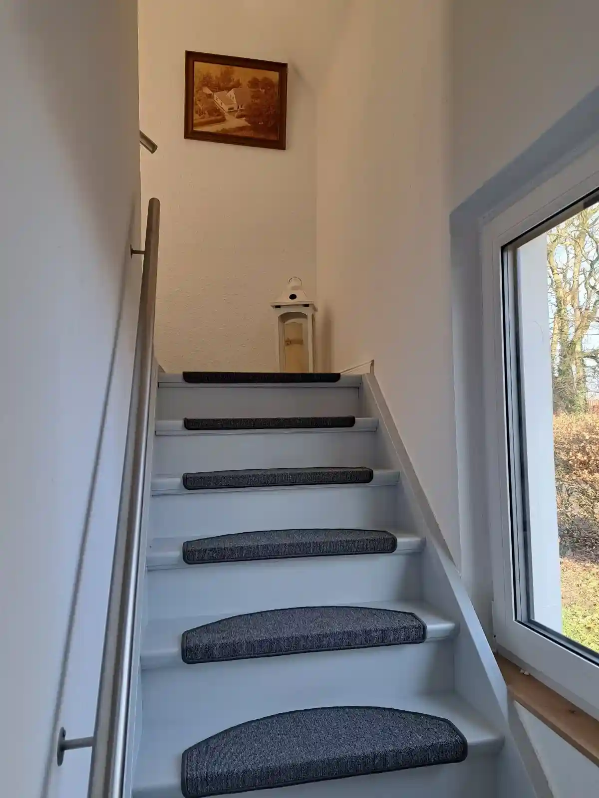 Diese gemütliche Ferienwohnung befindet sich im Obergeschoss des kernsanierten Hauses und eignet sich für maximal 4 Personen. Sie liegt sehr ruhig und idyllisch, umgeben von alten Eichen – ideal für Ruhesuchende und Naturfreunde.